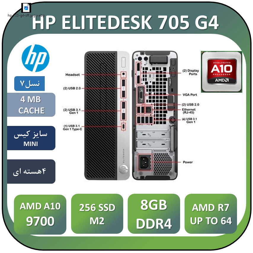 کیس مهندسی وارداتی HP ELITEDESK 705 G4 با پردازشگر AMD A10-9700 و رم 8G DDR4 و گرافیک AMD R7 512M DDR4 ، دارای پورت USB2 , USB3 , DISPLAY و TYPE C میباشد.❌این دستگاه دارای یک هفته گارانتی سلامت می باشد❌
