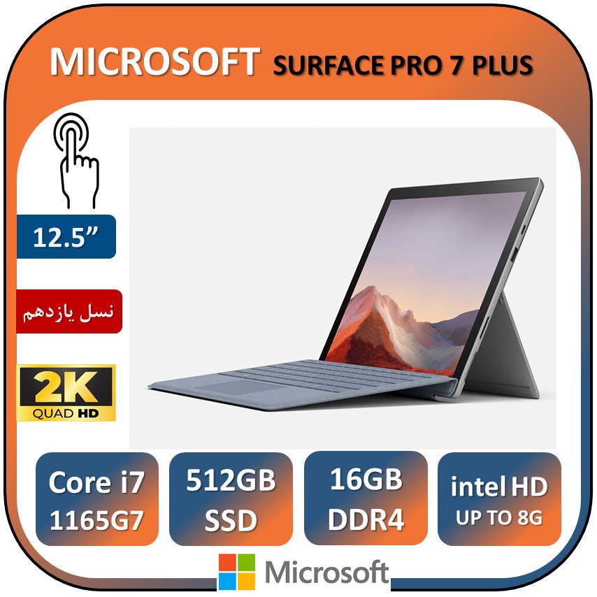 لپ تاپ استوک سرفیس پلاس پرو7 لمسی تبلتشو مایکروسافت مدل LAPTOP STOCK SURFACE PRO 7 PLUS | CORE i7 1165G7 | RAM16 |SSD512 M2 | 12.3" 2K